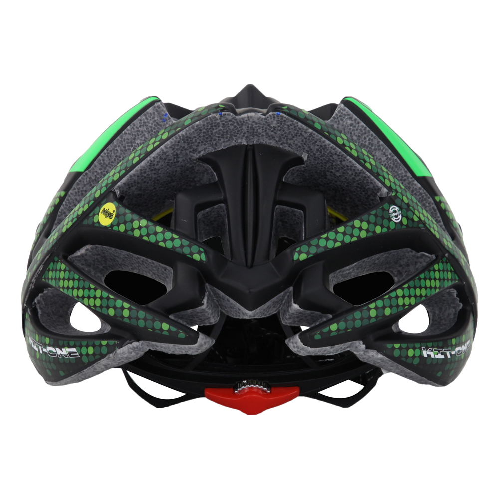 Multi-Flow Streamlined Ventilation –  is achieved by strategically placing 33 air vents, for ventilation and strength. Many streamlined shaped vents decrease’s the overall size of the helmet keeping it compact and strong. Large vents are more disruptive to airflow and can cause more drag. The Helmet is designed specifically with higher speeds that maintained on road bikes for optimal airflow and aerodynamic efficiency’s