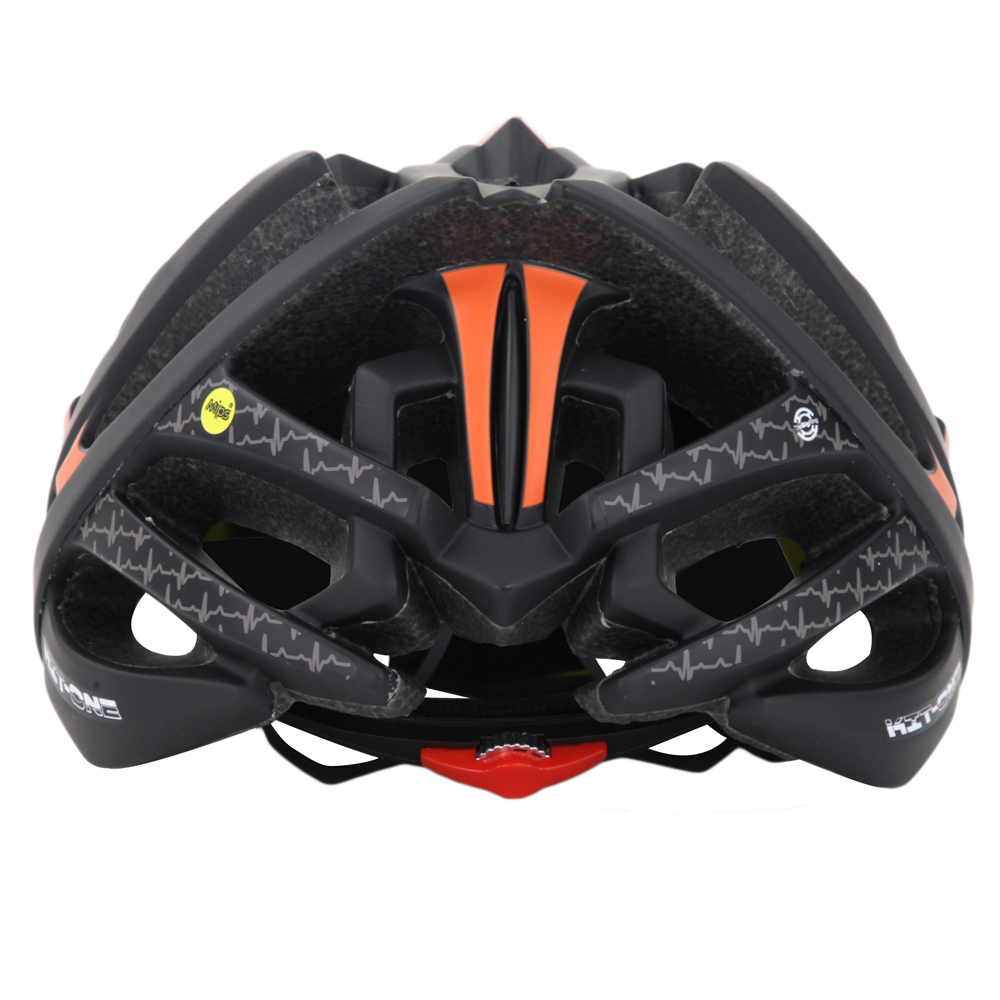 Multi-Flow Streamlined Ventilation – is achieved by strategically placing 33 air vents, for ventilation and strength. Many streamlined shaped vents decrease’s the overall size of the helmet keeping it compact and strong. Large vents are more disruptive to airflow and can cause more drag. The Helmet is designed specifically with higher speeds that maintained on road bikes for optimal airflow and aerodynamic efficiency’s